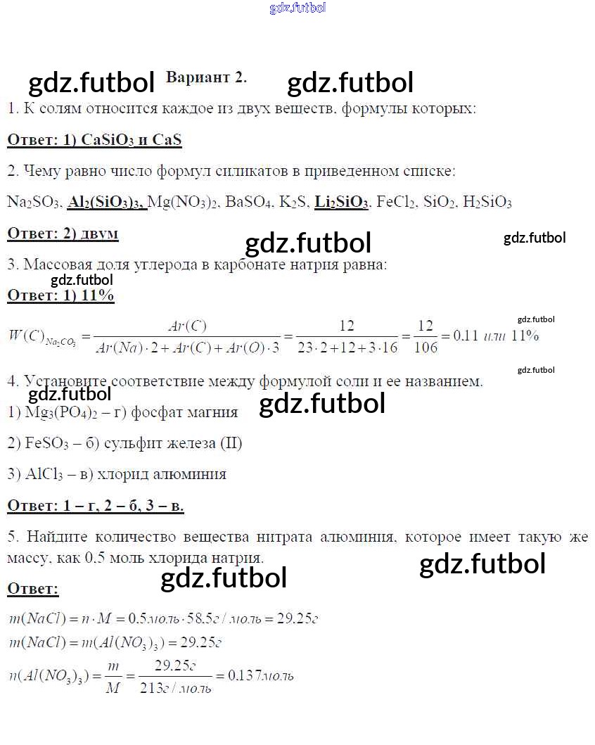 Готовые домашние задания по Химии за 8 класс Габриелян Контрольные работы УМК 2017 ФГОС - ПР-14. Варианты 2