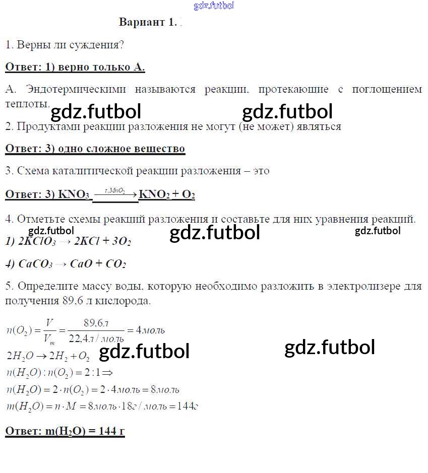 Готовые домашние задания по Химии за 8 класс Габриелян Контрольные работы УМК 2017 ФГОС - ПР-17. Варианты 1