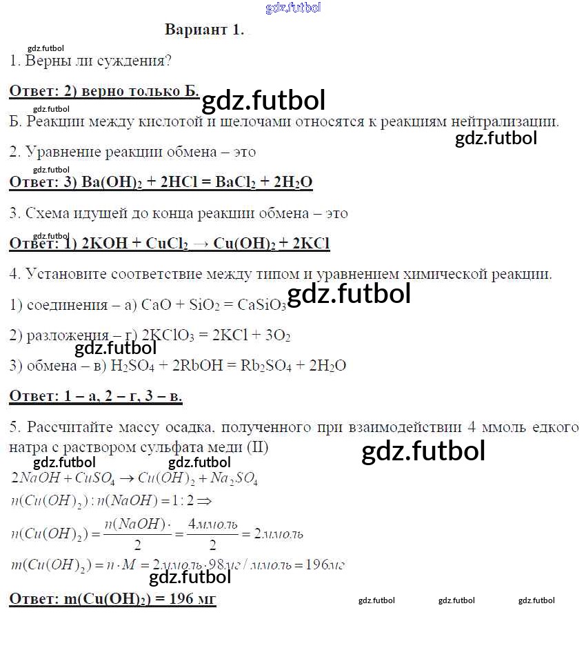Готовые домашние задания по Химии за 8 класс Габриелян Контрольные работы УМК 2017 ФГОС - ПР-20. Варианты 1