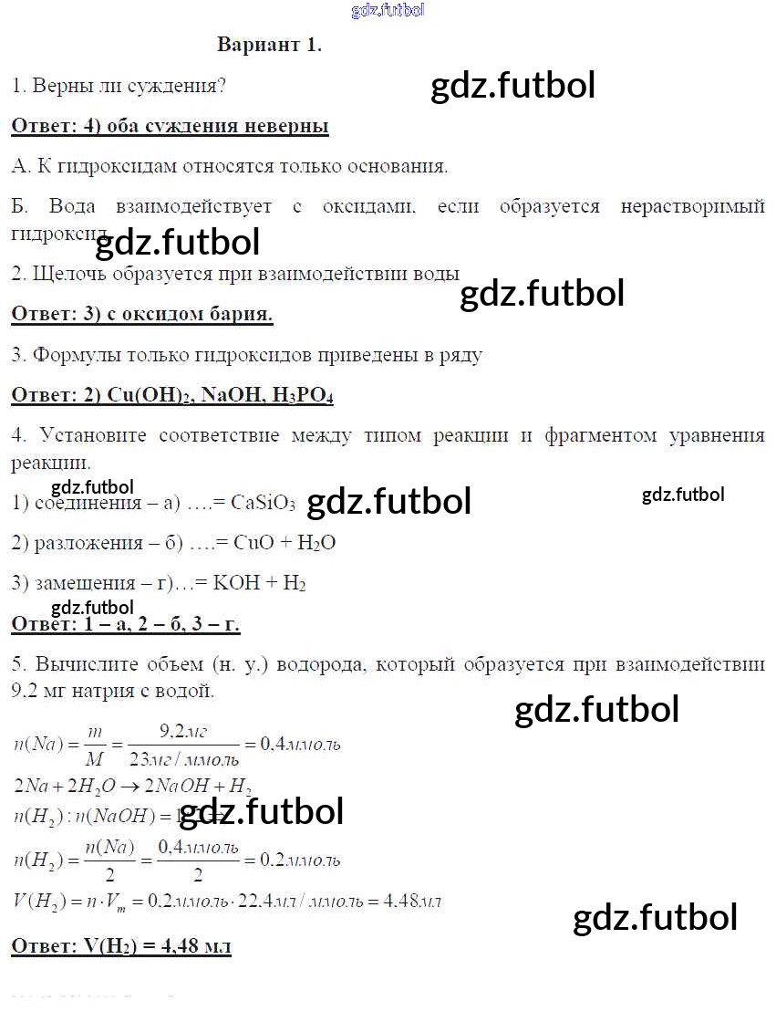 Готовые домашние задания по Химии за 8 класс Габриелян Контрольные работы УМК 2017 ФГОС - ПР-21. Варианты 1