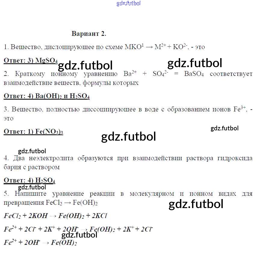 Готовые домашние задания по Химии за 8 класс Габриелян Контрольные работы УМК 2017 ФГОС - ПР-24. Варианты 2