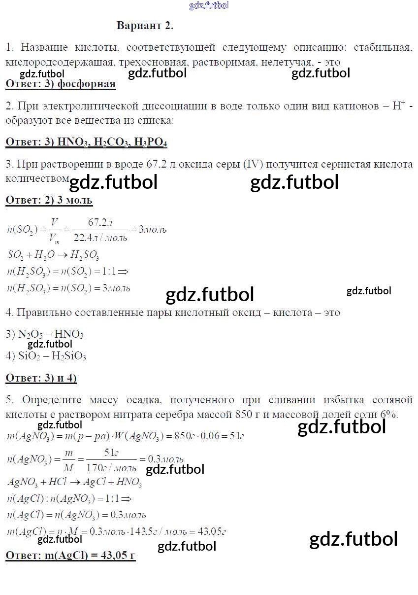 Готовые домашние задания по Химии за 8 класс Габриелян Контрольные работы УМК 2017 ФГОС - ПР-25. Варианты 2