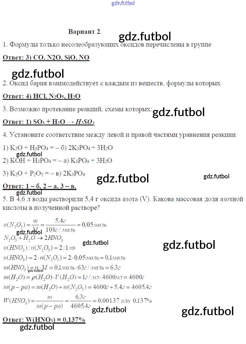 Готовые домашние задания по Химии за 8 класс Габриелян Контрольные работы УМК 2017 ФГОС - ПР-27. Варианты 2