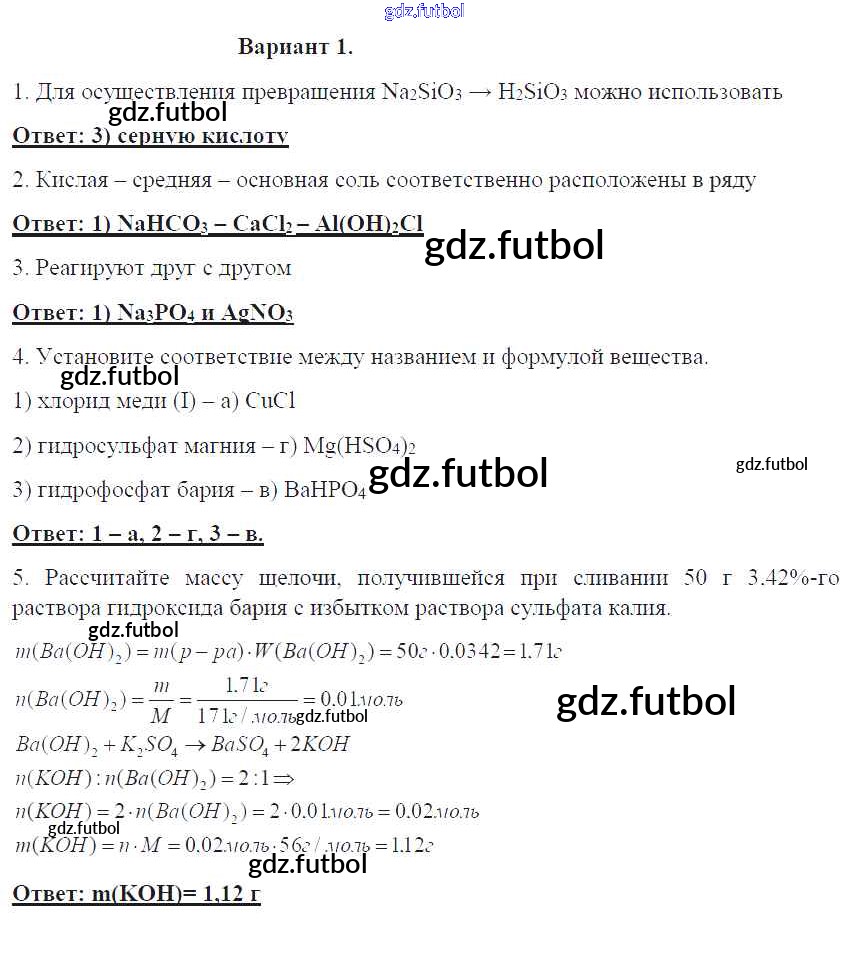 Готовые домашние задания по Химии за 8 класс Габриелян Контрольные работы УМК 2017 ФГОС - ПР-28. Варианты 1