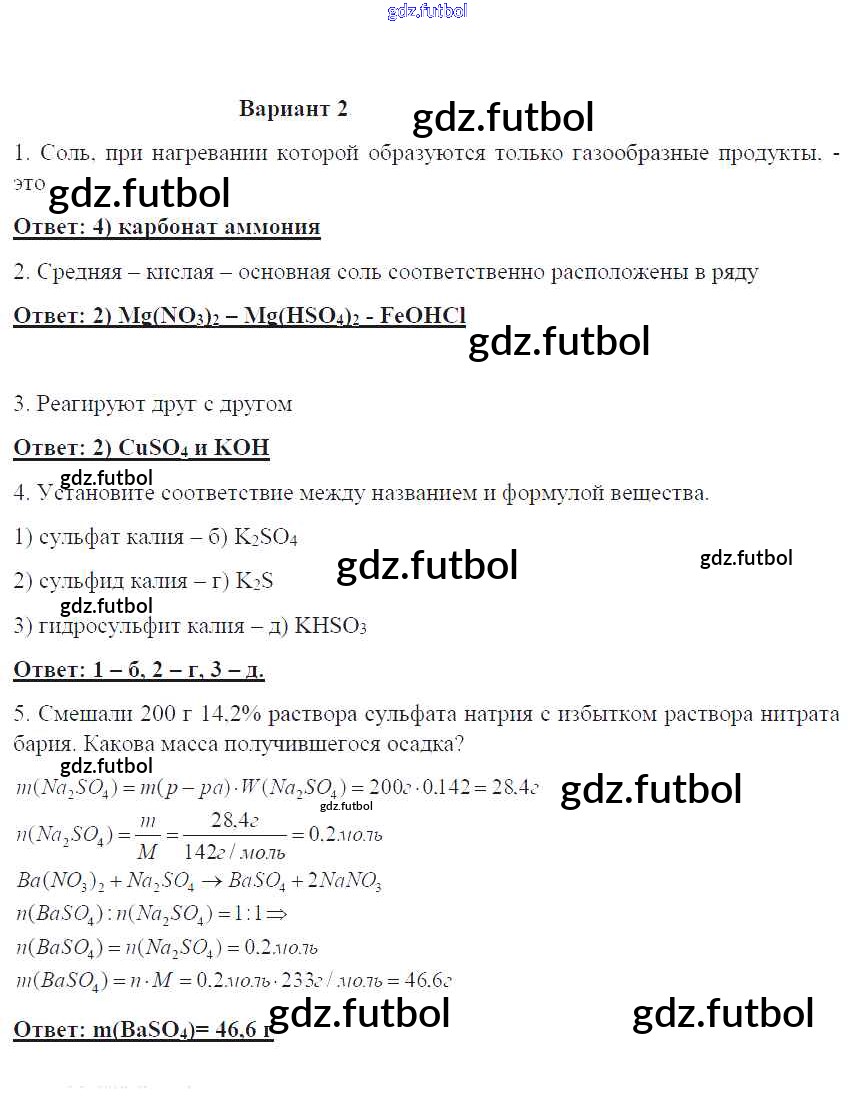Готовые домашние задания по Химии за 8 класс Габриелян Контрольные работы УМК 2017 ФГОС - ПР-28. Варианты 2