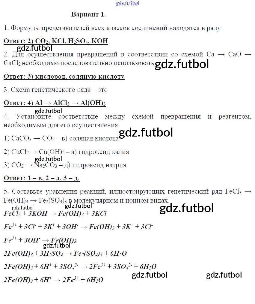 Готовые домашние задания по Химии за 8 класс Габриелян Контрольные работы УМК 2017 ФГОС - ПР-29. Варианты 1