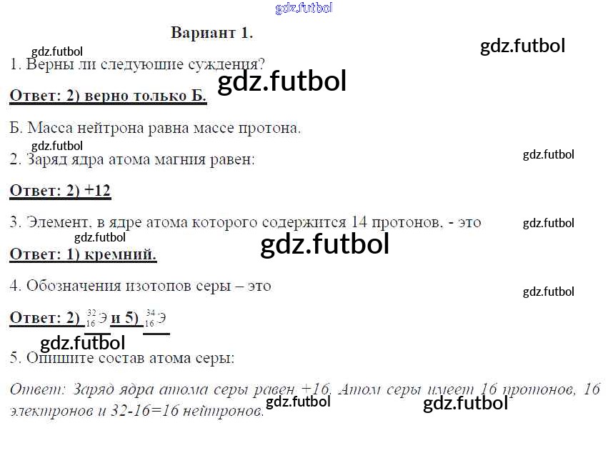 Готовые домашние задания по Химии за 8 класс Габриелян Контрольные работы УМК 2017 ФГОС - ПР-3. Варианты 1