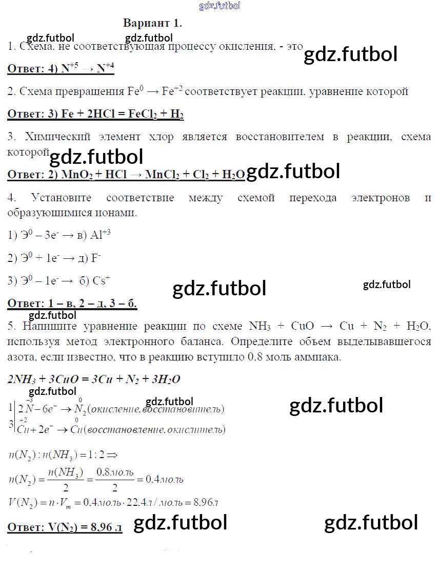 Готовые домашние задания по Химии за 8 класс Габриелян Контрольные работы УМК 2017 ФГОС - ПР-30. Варианты 1