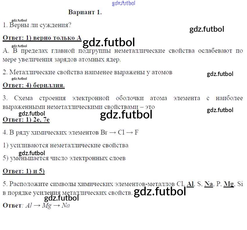 Готовые домашние задания по Химии за 8 класс Габриелян Контрольные работы УМК 2017 ФГОС - ПР-5. Варианты 1