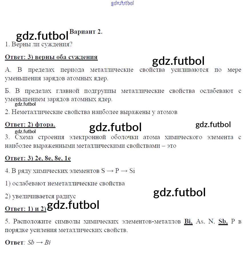 Готовые домашние задания по Химии за 8 класс Габриелян Контрольные работы УМК 2017 ФГОС - ПР-5. Варианты 2