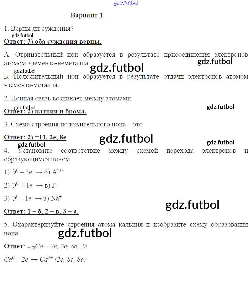 Готовые домашние задания по Химии за 8 класс Габриелян Контрольные работы УМК 2017 ФГОС - ПР-6. Варианты 1