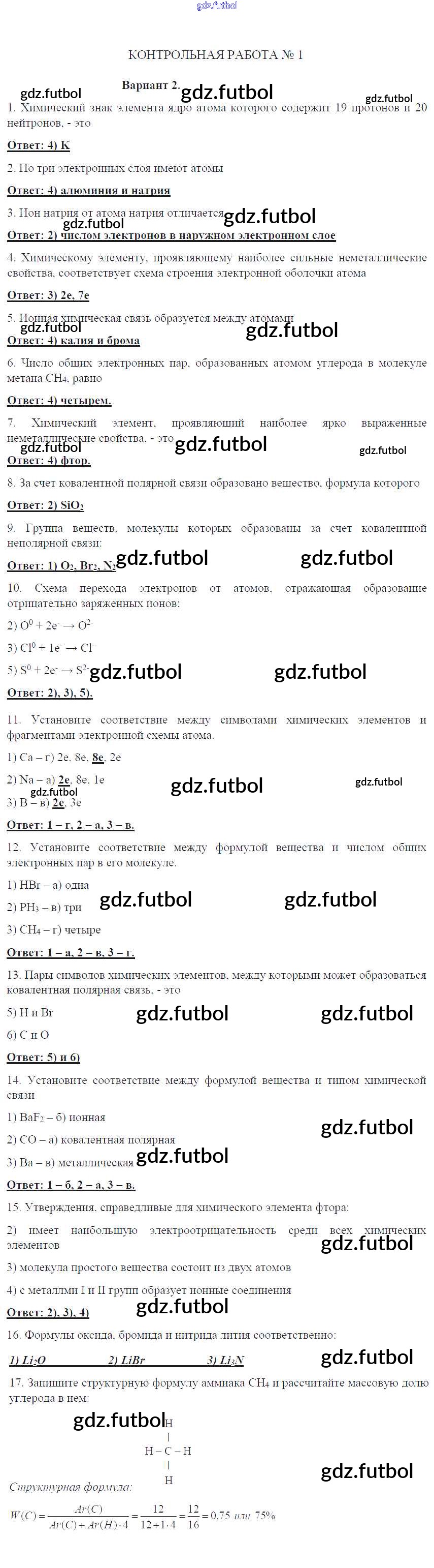 Готовые домашние задания по Химии за 8 класс Габриелян Контрольные работы УМК 2017 ФГОС - КР-1. Варианты 2
