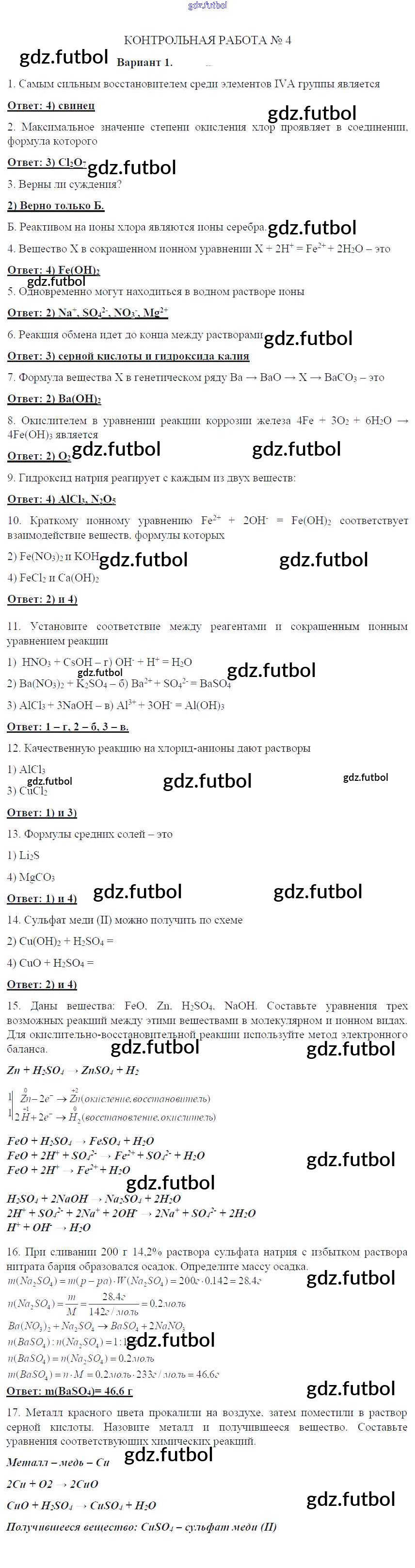 Готовые домашние задания по Химии за 8 класс Габриелян Контрольные работы УМК 2017 ФГОС - КР-4. Варианты 1