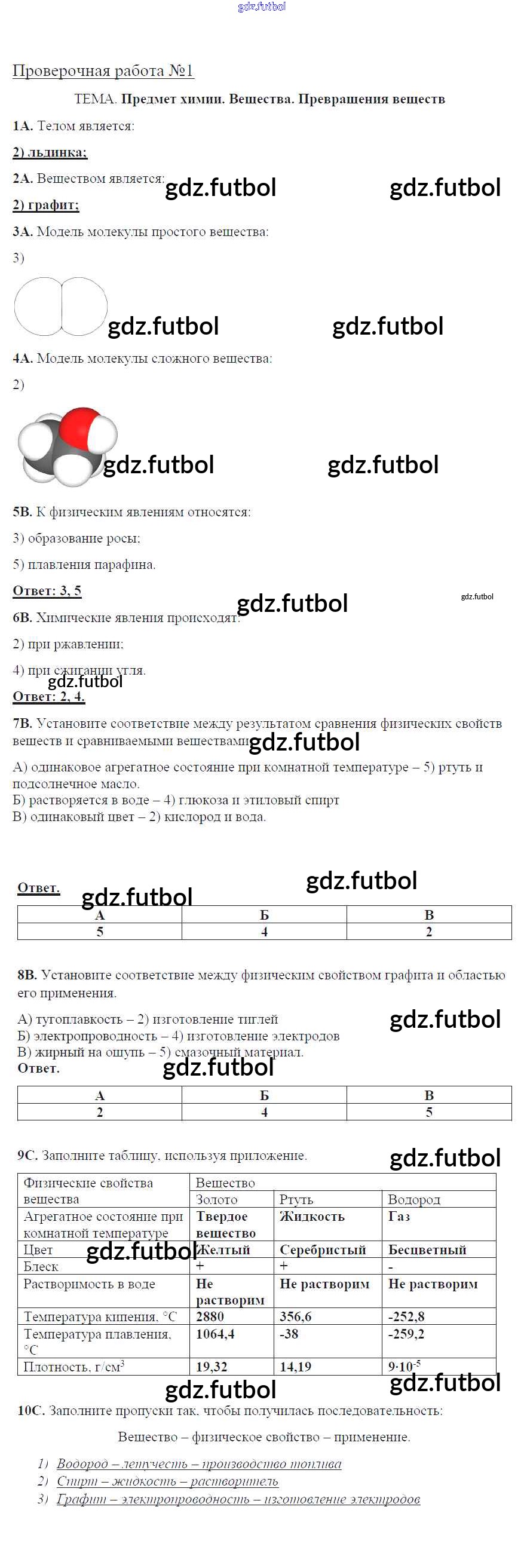 Готовые домашние задания по Химии за 8 класс Габриелян Тетрадь для оценки качества знаний Вертикаль 2013 ФГОС - Проверочные работы 1