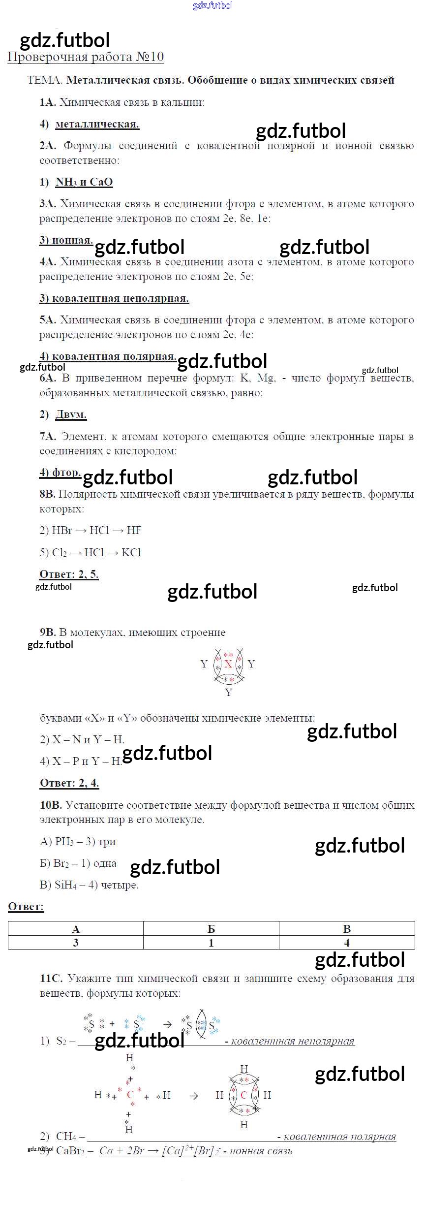 Готовые домашние задания по Химии за 8 класс Габриелян Тетрадь для оценки качества знаний Вертикаль 2013 ФГОС - Проверочные работы 10