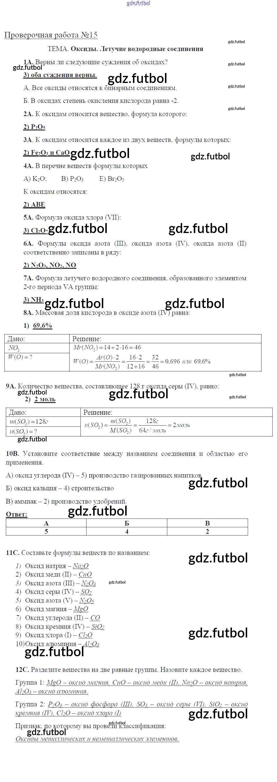 Готовые домашние задания по Химии за 8 класс Габриелян Тетрадь для оценки качества знаний Вертикаль 2013 ФГОС - Проверочные работы 15