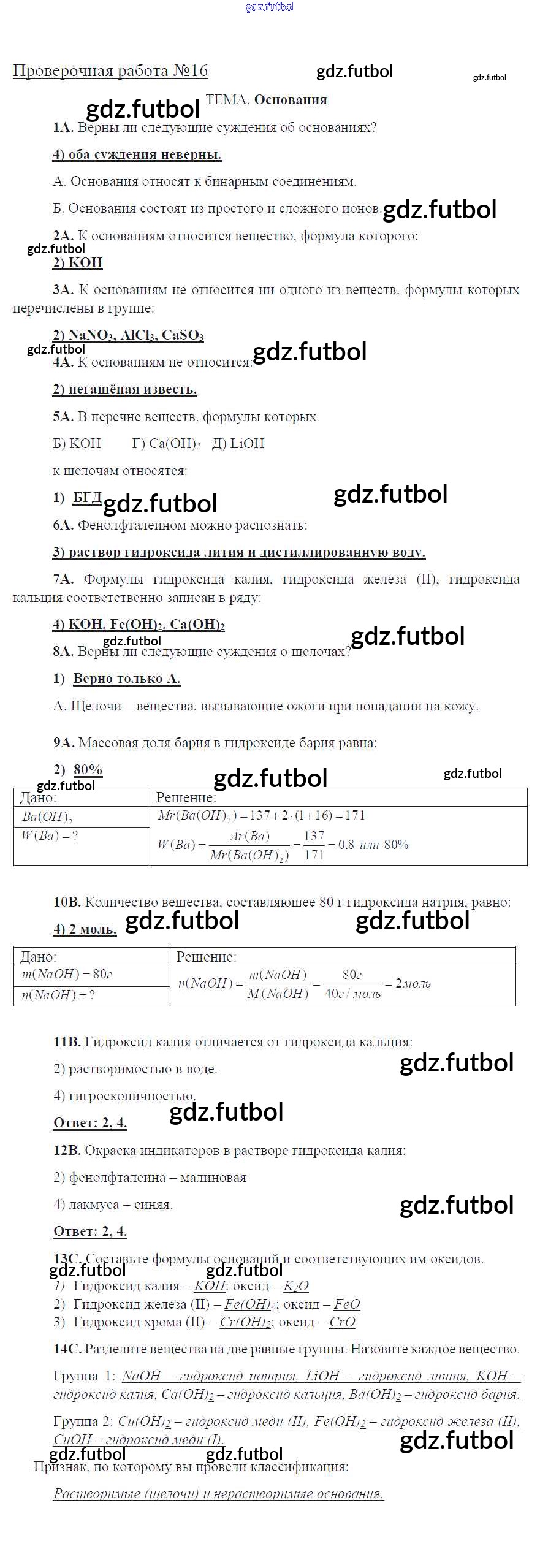Готовые домашние задания по Химии за 8 класс Габриелян Тетрадь для оценки качества знаний Вертикаль 2013 ФГОС - Проверочные работы 16