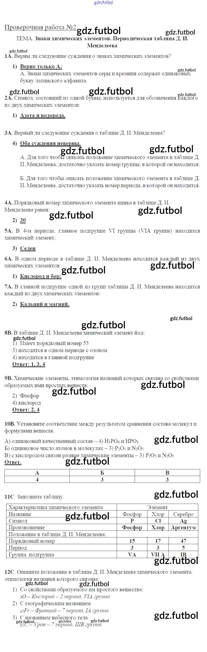 Готовые домашние задания по Химии за 8 класс Габриелян Тетрадь для оценки качества знаний Вертикаль 2013 ФГОС - Проверочные работы 2