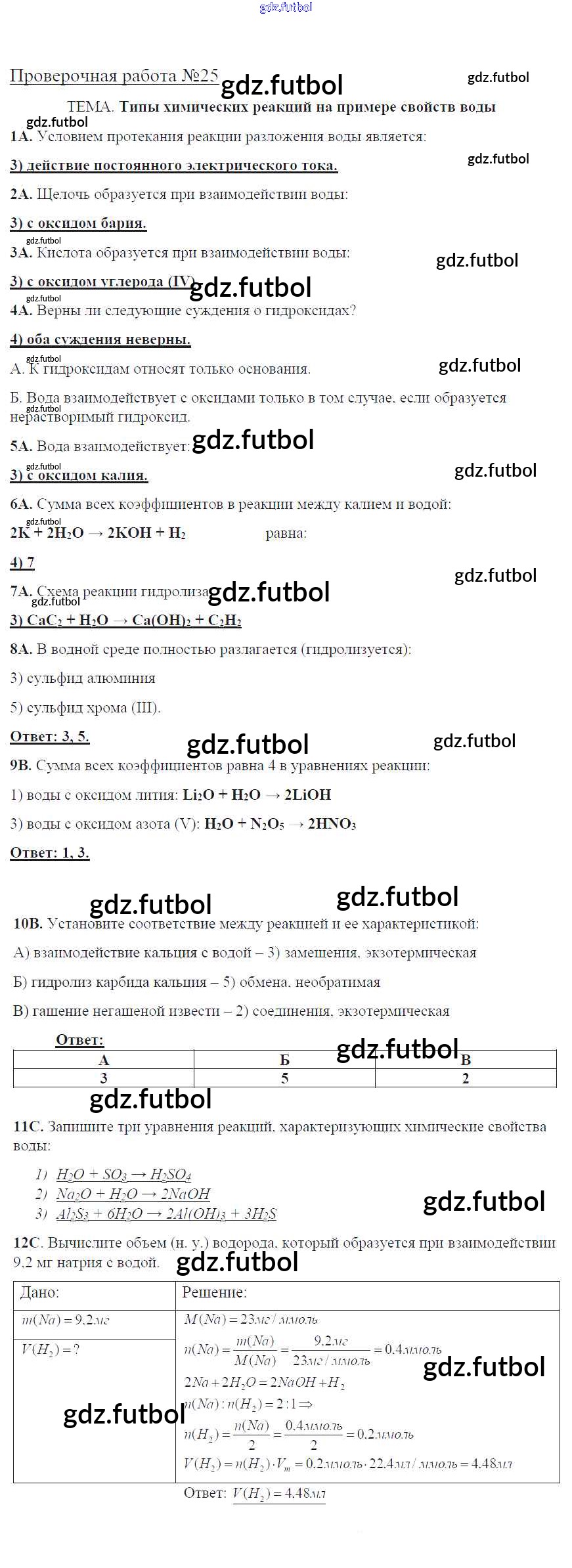 Готовые домашние задания по Химии за 8 класс Габриелян Тетрадь для оценки качества знаний Вертикаль 2013 ФГОС - Проверочные работы 25