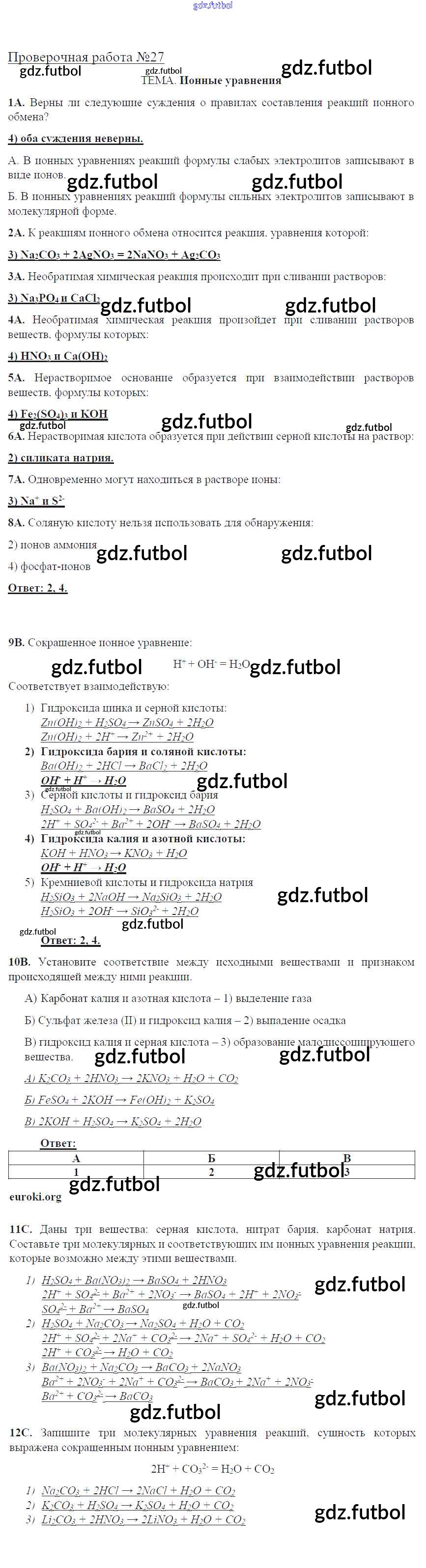 Готовые домашние задания по Химии за 8 класс Габриелян Тетрадь для оценки качества знаний Вертикаль 2013 ФГОС - Проверочные работы 27