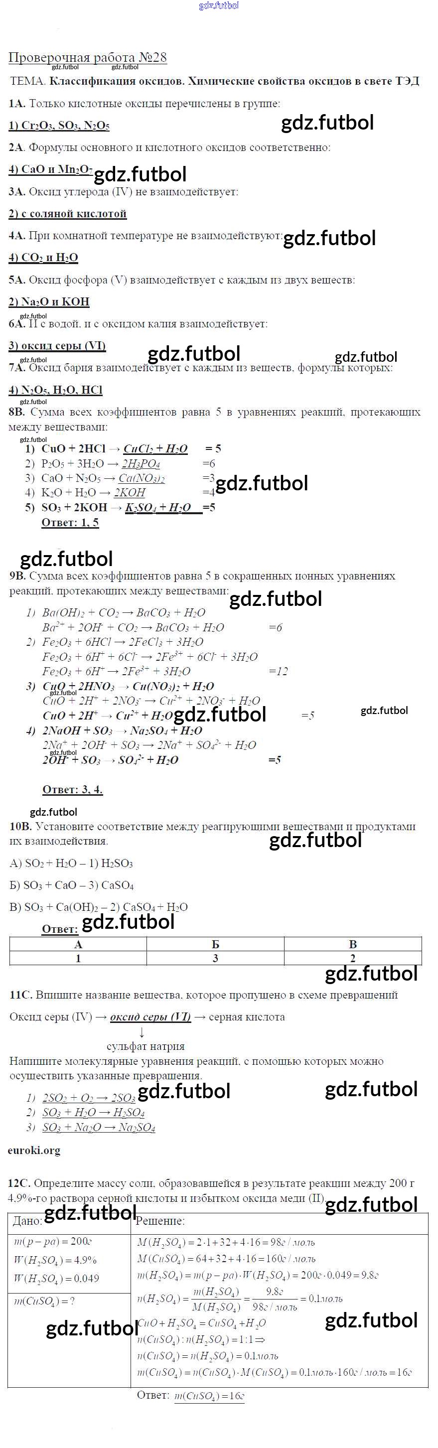 Готовые домашние задания по Химии за 8 класс Габриелян Тетрадь для оценки качества знаний Вертикаль 2013 ФГОС - Проверочные работы 28