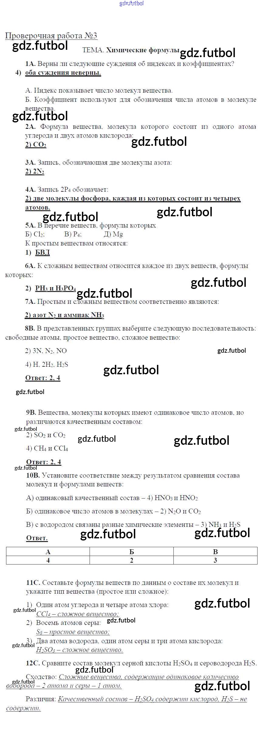 Готовые домашние задания по Химии за 8 класс Габриелян Тетрадь для оценки качества знаний Вертикаль 2013 ФГОС - Проверочные работы 3