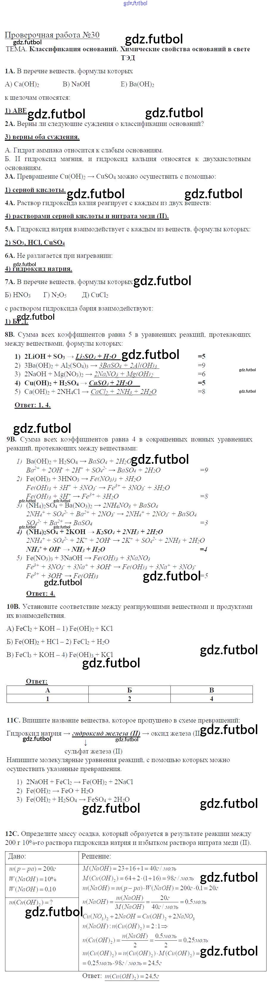Готовые домашние задания по Химии за 8 класс Габриелян Тетрадь для оценки качества знаний Вертикаль 2013 ФГОС - Проверочные работы 30
