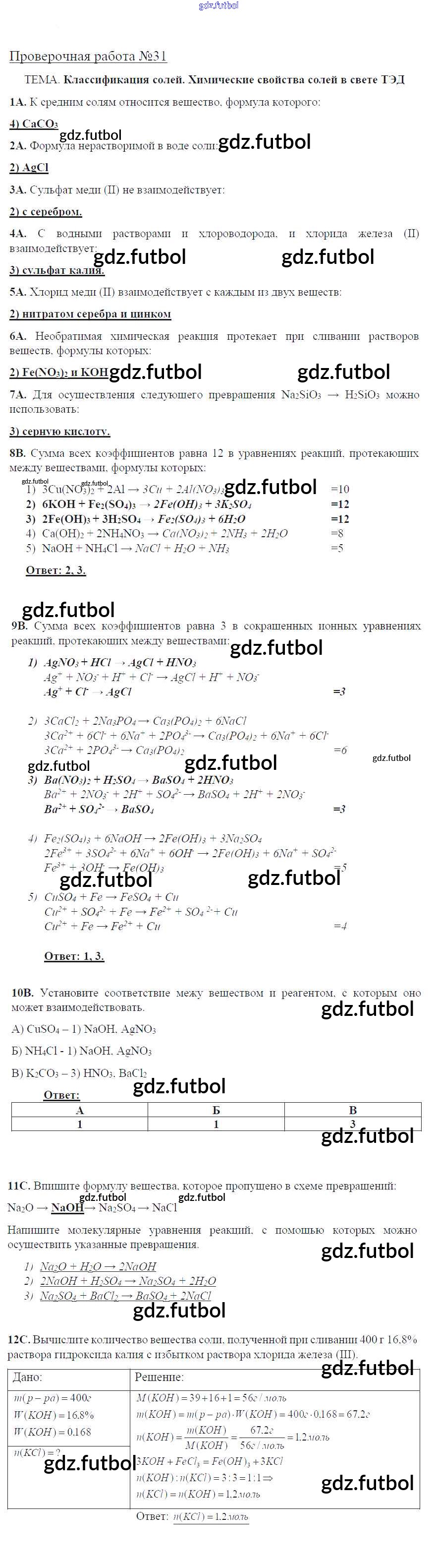Готовые домашние задания по Химии за 8 класс Габриелян Тетрадь для оценки качества знаний Вертикаль 2013 ФГОС - Проверочные работы 31