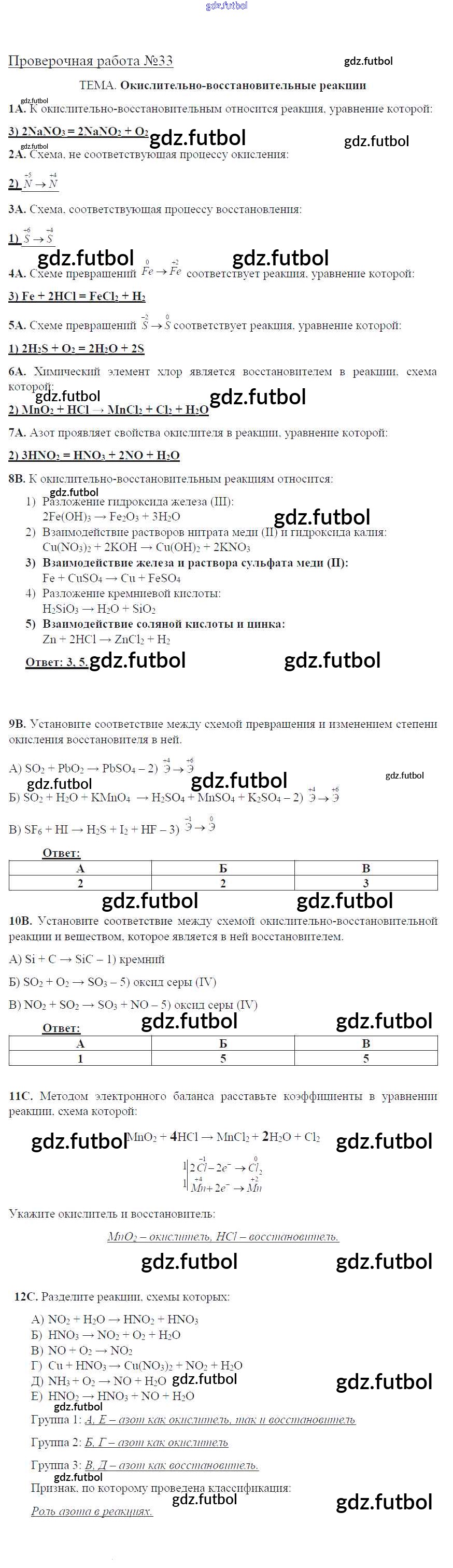 Готовые домашние задания по Химии за 8 класс Габриелян Тетрадь для оценки качества знаний Вертикаль 2013 ФГОС - Проверочные работы 33