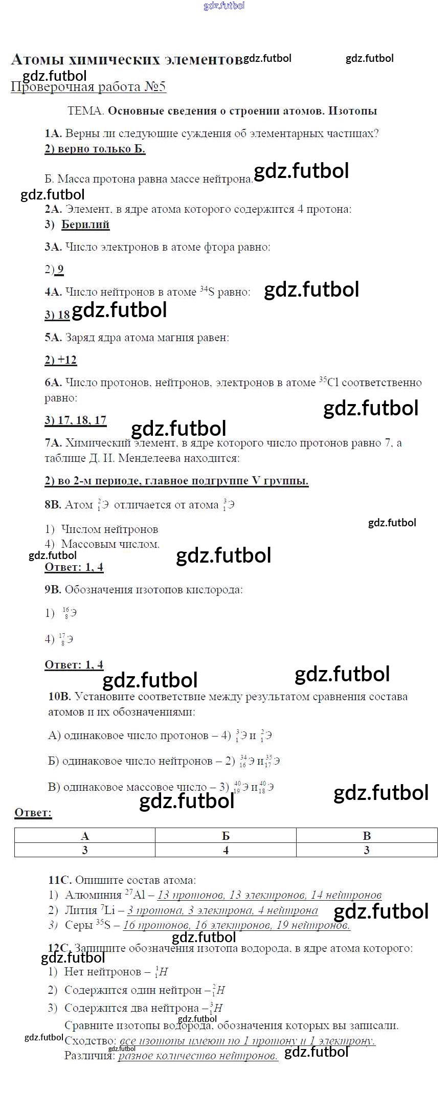 Готовые домашние задания по Химии за 8 класс Габриелян Тетрадь для оценки качества знаний Вертикаль 2013 ФГОС - Проверочные работы 5