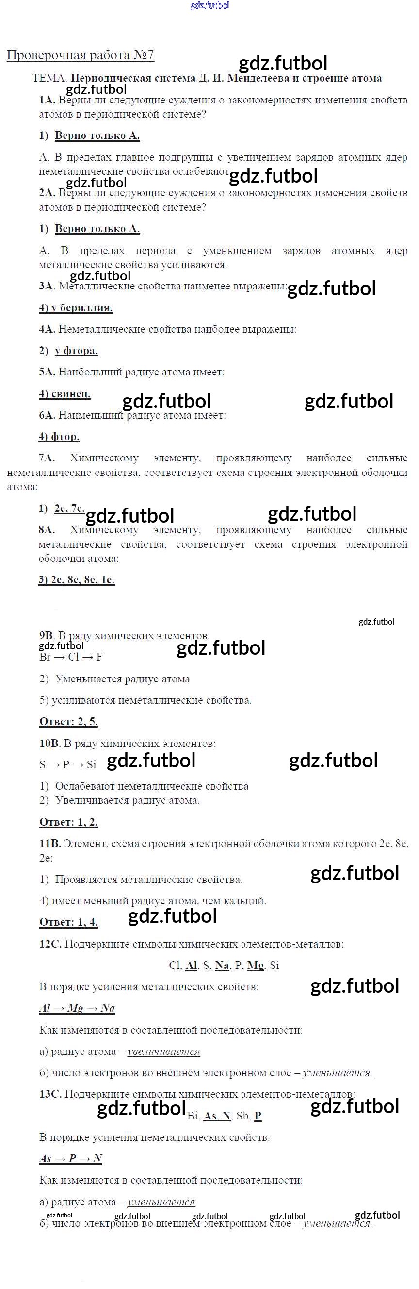 Готовые домашние задания по Химии за 8 класс Габриелян Тетрадь для оценки качества знаний Вертикаль 2013 ФГОС - Проверочные работы 7