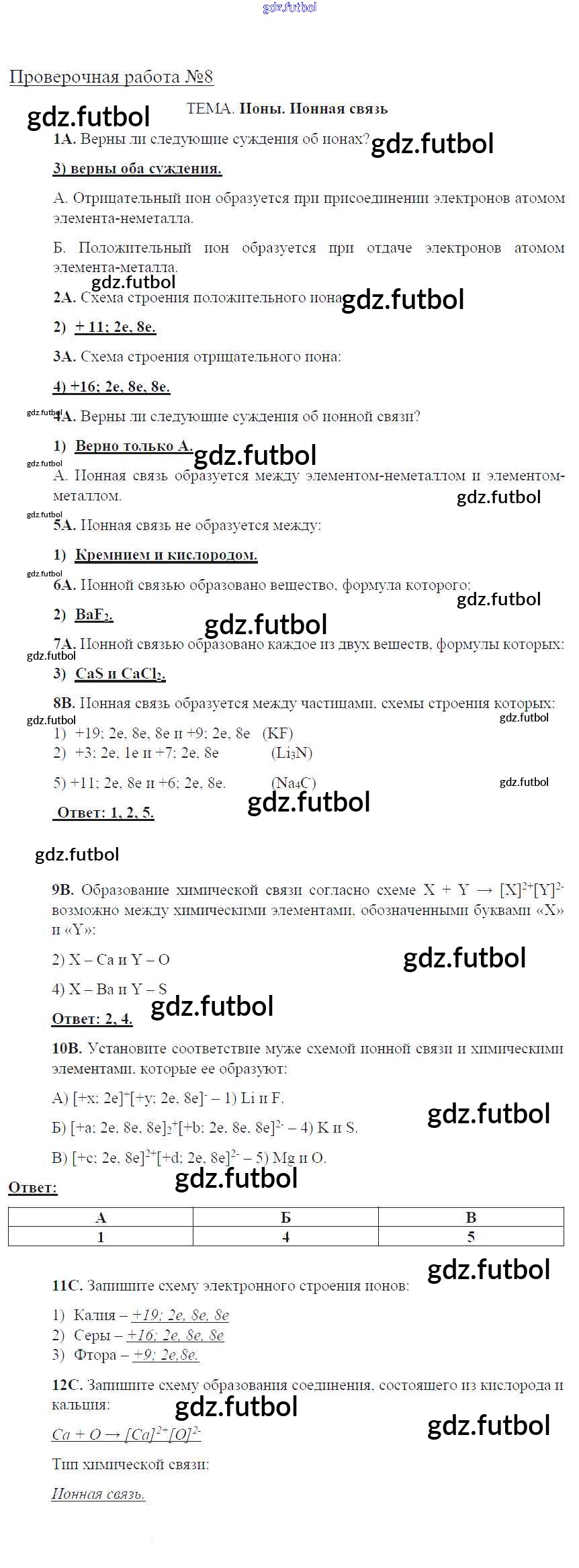 Готовые домашние задания по Химии за 8 класс Габриелян Тетрадь для оценки качества знаний Вертикаль 2013 ФГОС - Проверочные работы 8
