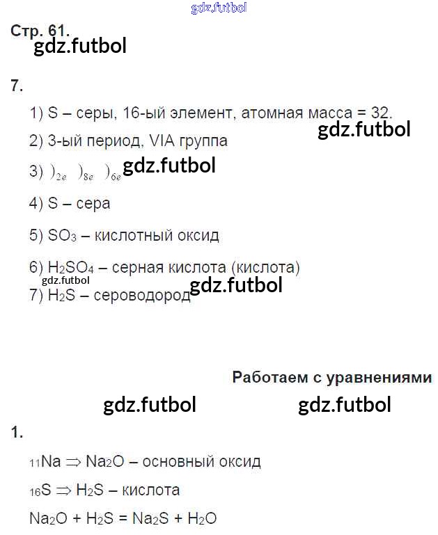Готовые решения задач (ГДЗ) по Химии восьмой класс Гара Тетрадь-тренажер Сферы 2017 ФГОС - Страницы 61 доступны для различных учебных материалов. У нас вы сможете найти авторские решения для всех пособий, предназначенных для школьников. Не секрет, что в настоящее время многие школьники прибегают к использованию готовых решебников, ведь они содержат подробные ответы для каждого упражнения, представленного в учебнике.
