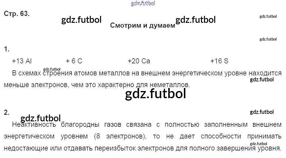Готовые решения задач (ГДЗ) по Химии восьмой класс Гара Тетрадь-тренажер Сферы 2017 ФГОС - Страницы 63 доступны для различных учебных материалов. У нас вы сможете найти авторские решения для всех пособий, предназначенных для школьников. Не секрет, что в настоящее время многие школьники прибегают к использованию готовых решебников, ведь они содержат подробные ответы для каждого упражнения, представленного в учебнике.