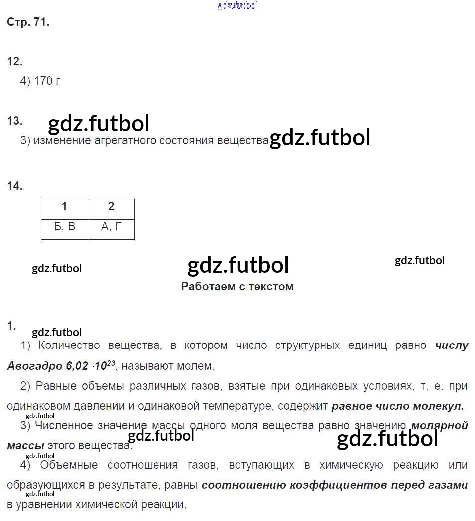 Готовые решения задач (ГДЗ) по Химии восьмой класс Гара Тетрадь-тренажер Сферы 2017 ФГОС - Страницы 71 доступны для различных учебных материалов. У нас вы сможете найти авторские решения для всех пособий, предназначенных для школьников. Не секрет, что в настоящее время многие школьники прибегают к использованию готовых решебников, ведь они содержат подробные ответы для каждого упражнения, представленного в учебнике.