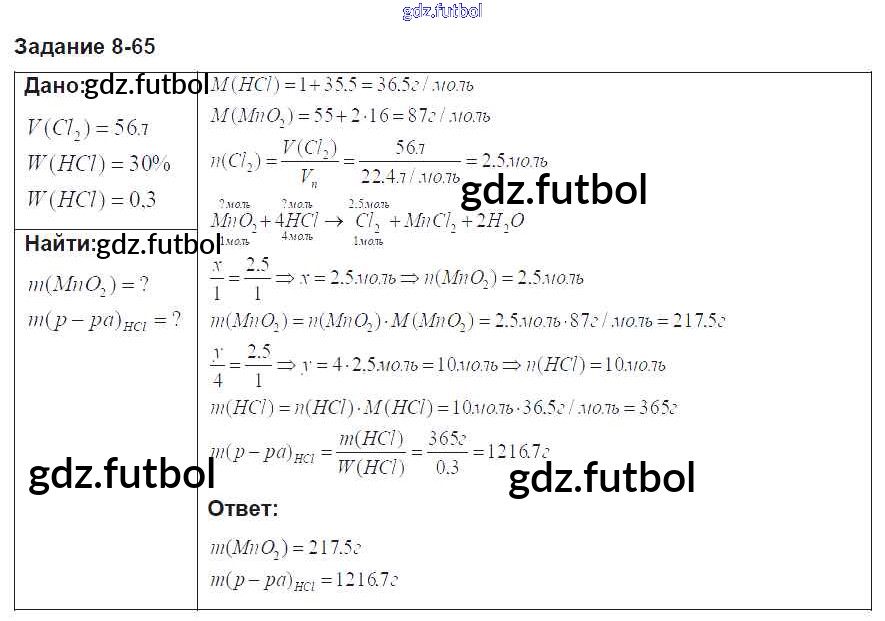 Готовые домашние задания по Химии за 8 класс Кузнецова Задачник Алгоритм успеха 2015 ФГОС - Глава 8 65