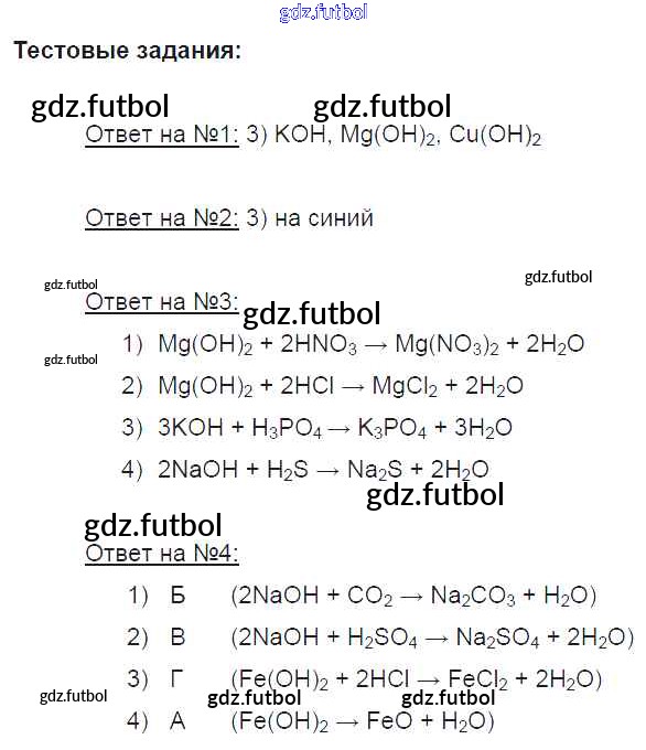 Готовые домашние задания по Химии за 8 класс Рудзитис Учебник УМК 2016 ФГОС - Тестовые задания. Параграфы 42