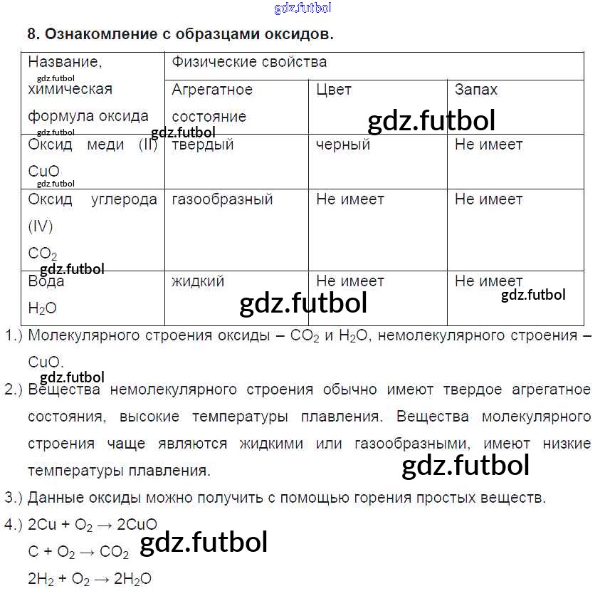 Готовые домашние задания по Химии за 8 класс Рудзитис Учебник УМК 2016 ФГОС - Лабораторные опыты 8