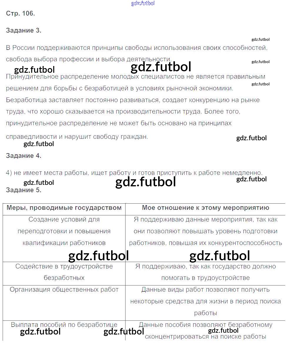 Готовые домашние задания по Обществознанию за 8 класс Митькин Рабочая тетрадь УМК 2017 ФГОС - Страницы 106