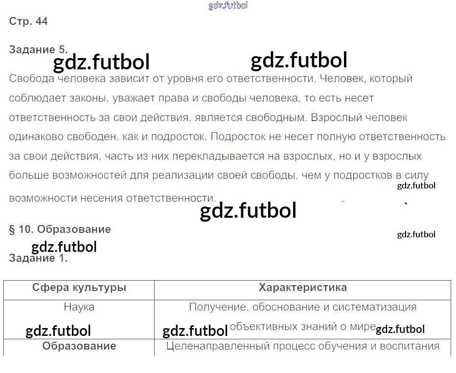 Готовые домашние задания по Обществознанию за 8 класс Митькин Рабочая тетрадь УМК 2017 ФГОС - Страницы 44