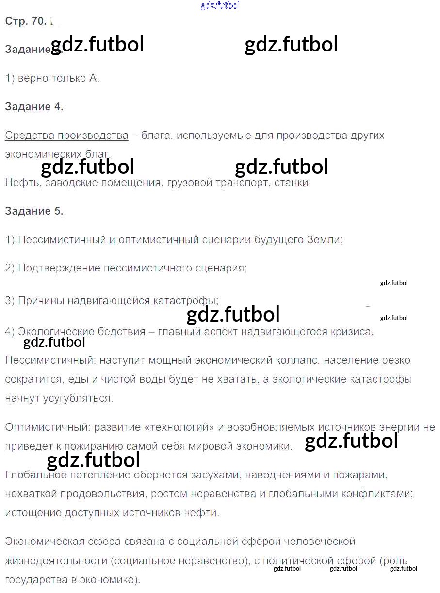 Готовые домашние задания по Обществознанию за 8 класс Митькин Рабочая тетрадь УМК 2017 ФГОС - Страницы 70