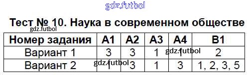 Готовые домашние задания по Обществознанию за 8 класс Поздеев Контрольно-измерительные материалы (КИМ) 2017 ФГОС - Тесты Тест №10. Наука в современном обществе