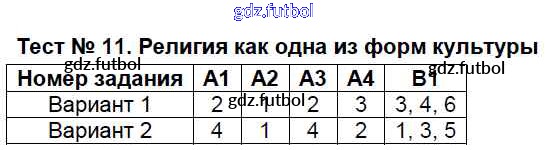 Готовые домашние задания по Обществознанию за 8 класс Поздеев Контрольно-измерительные материалы (КИМ) 2017 ФГОС - Тесты Тест №11. Религия как одна из форм культуры