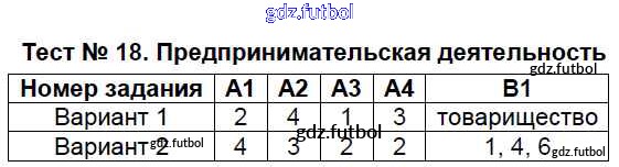 Готовые домашние задания по Обществознанию за 8 класс Поздеев Контрольно-измерительные материалы (КИМ) 2017 ФГОС - Тесты Тест №18. Предпринимательская деятельность