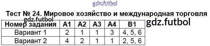 Готовые домашние задания по Обществознанию за 8 класс Поздеев Контрольно-измерительные материалы (КИМ) 2017 ФГОС - Тесты Тест №24. Мировое хозяйство и международная торговля