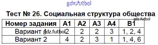 Готовые домашние задания по Обществознанию за 8 класс Поздеев Контрольно-измерительные материалы (КИМ) 2017 ФГОС - Тесты Тест №26. Социальная структура общества