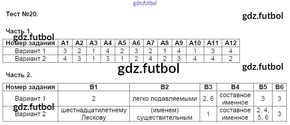 Готовые домашние задания по Русскому языку за 8 класс Егорова Контрольно-измерительные материалы (КИМ) 2018 ФГОС - Тесты 20