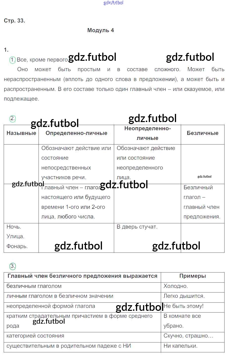 Готовые решения задач (ГДЗ) по Русскому языку восьмой класс Ерохина Рабочая тетрадь УМК 2014 ФГОС - Страницы 33 доступны для различных учебных материалов. У нас вы сможете найти авторские решения для всех пособий, предназначенных для школьников. Не секрет, что в настоящее время многие школьники прибегают к использованию готовых решебников, ведь они содержат подробные ответы для каждого упражнения, представленного в учебнике.