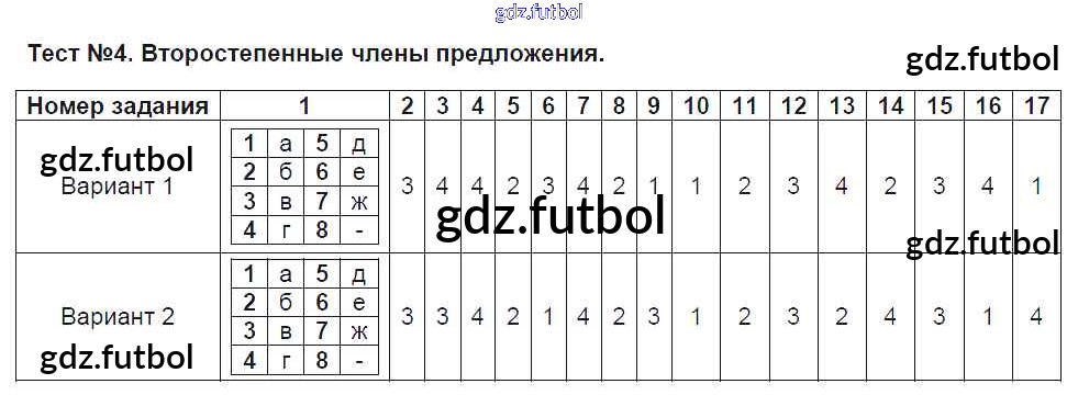 Готовые домашние задания по Русскому языку за 8 класс Клевцова Тематические тесты УМК 2018 ФГОС - Тесты Тест №4. Второстепенные члены предложения