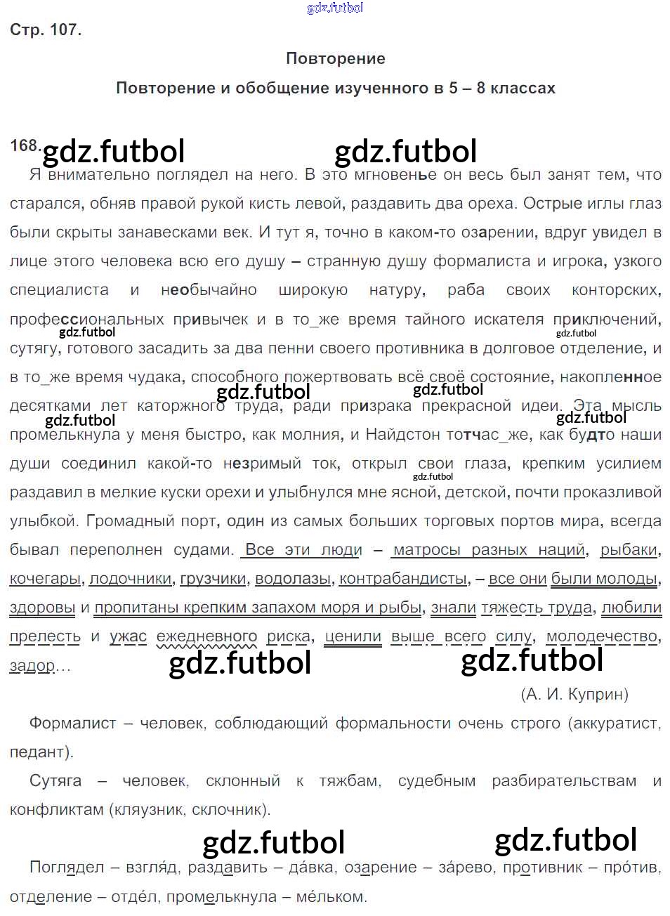 Готовые домашние задания по Русскому языку за 8 класс Кулаева Рабочая тетрадь УМК 2015 ФГОС - Упражнения 168